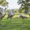Handcrafted stainless steel crane fountain sculpture with dynamic poses and integrated water flow.
