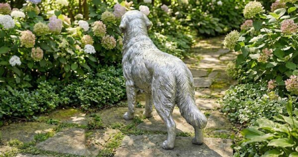 Whether you are looking to celebrate your love for the breed or seeking a sophisticated addition to your landscape design, this Golden Retriever sculpture offers a blend of luxury and warmth.