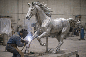 Each sculpture is produced through art-quality forging, combined with extensive hand welding, grinding, and polishing. Skilled craftsmen meticulously refine every surface to ensure smooth transitions, concealed weld seams, and consistent texture across the entire piece.