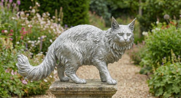 The Silent Guardian: Life-Size Maine Coon Stainless Steel Garden Sculpture