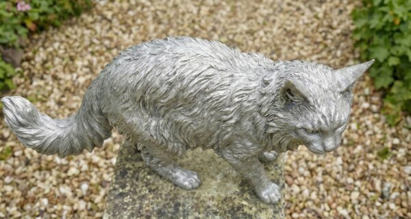 Bring the spirit of the hunt to your landscape. This sculpture captures a Maine Coon cat in a moment of intense focus—mid-stride, ears perched, and tail flowing. Unlike mass-produced garden ornaments, this is a piece of fine art that combines the warmth of organic life with the cool, enduring strength of stainless steel. The unique “Aged Silver” patina allows it to blend naturally with greenery while standing out as a sophisticated modern art piece.